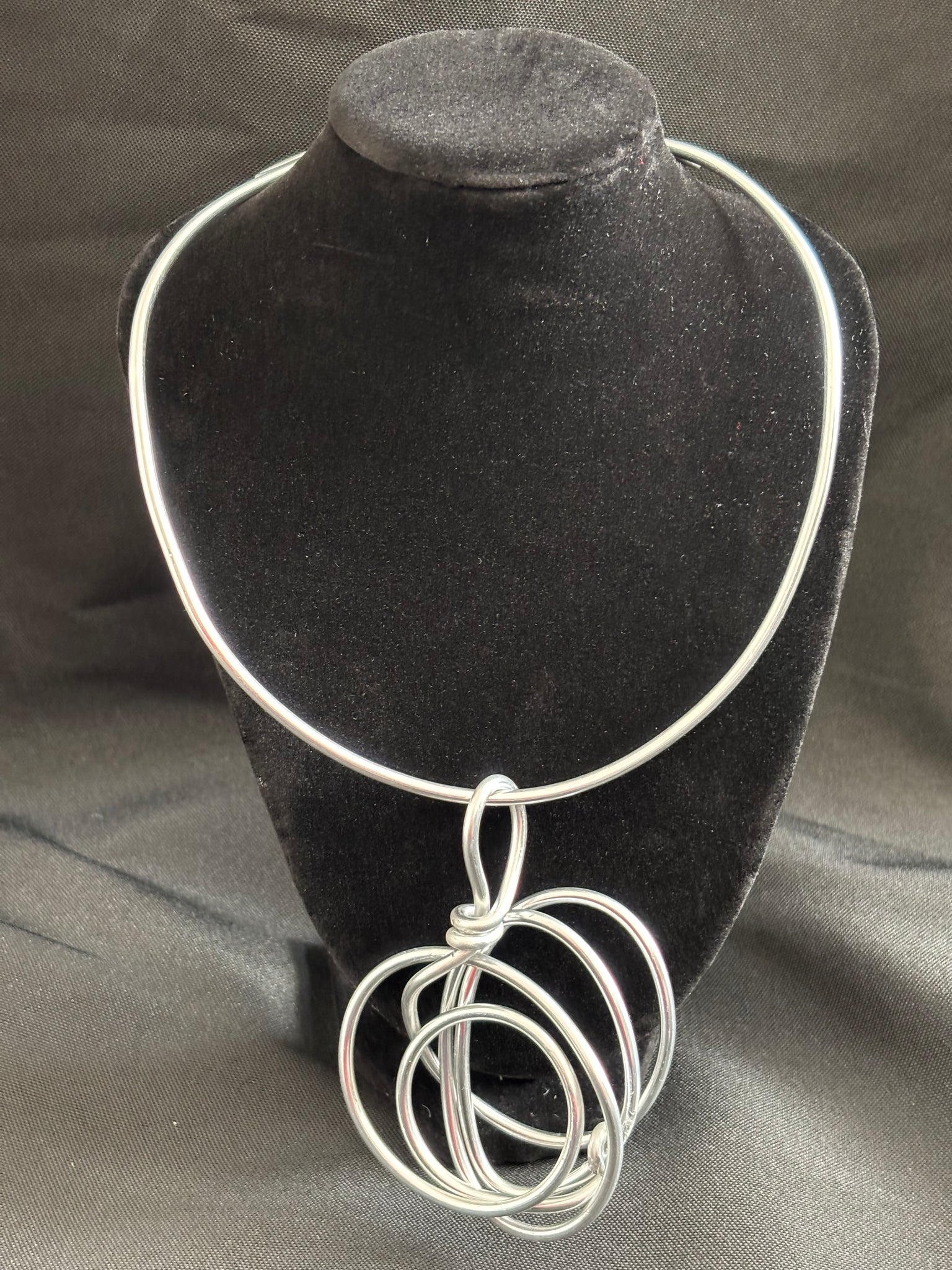 Hand twisted wire necklace with hand twisted metal accent pendant. Lightweight, lead and nickel free.