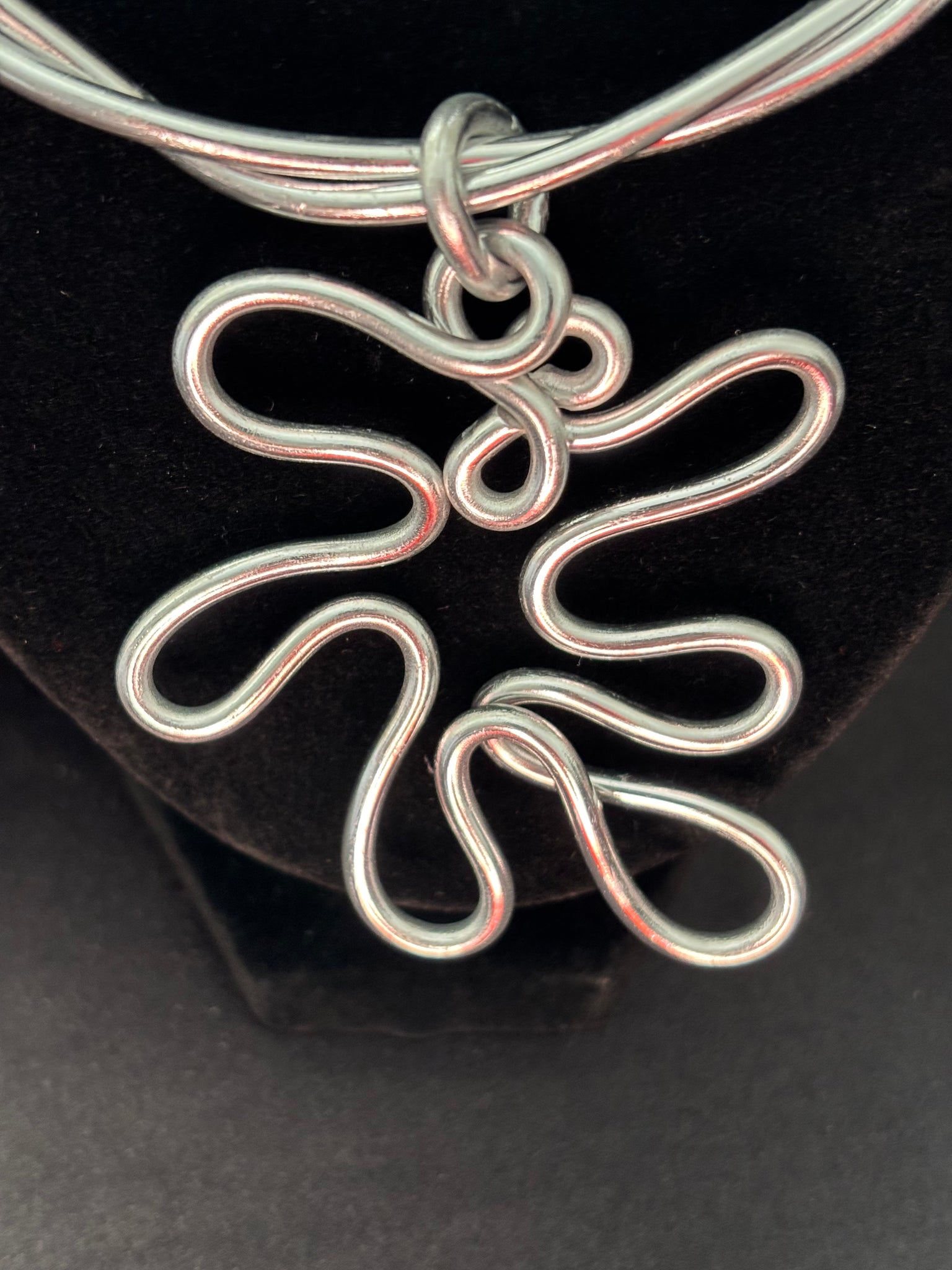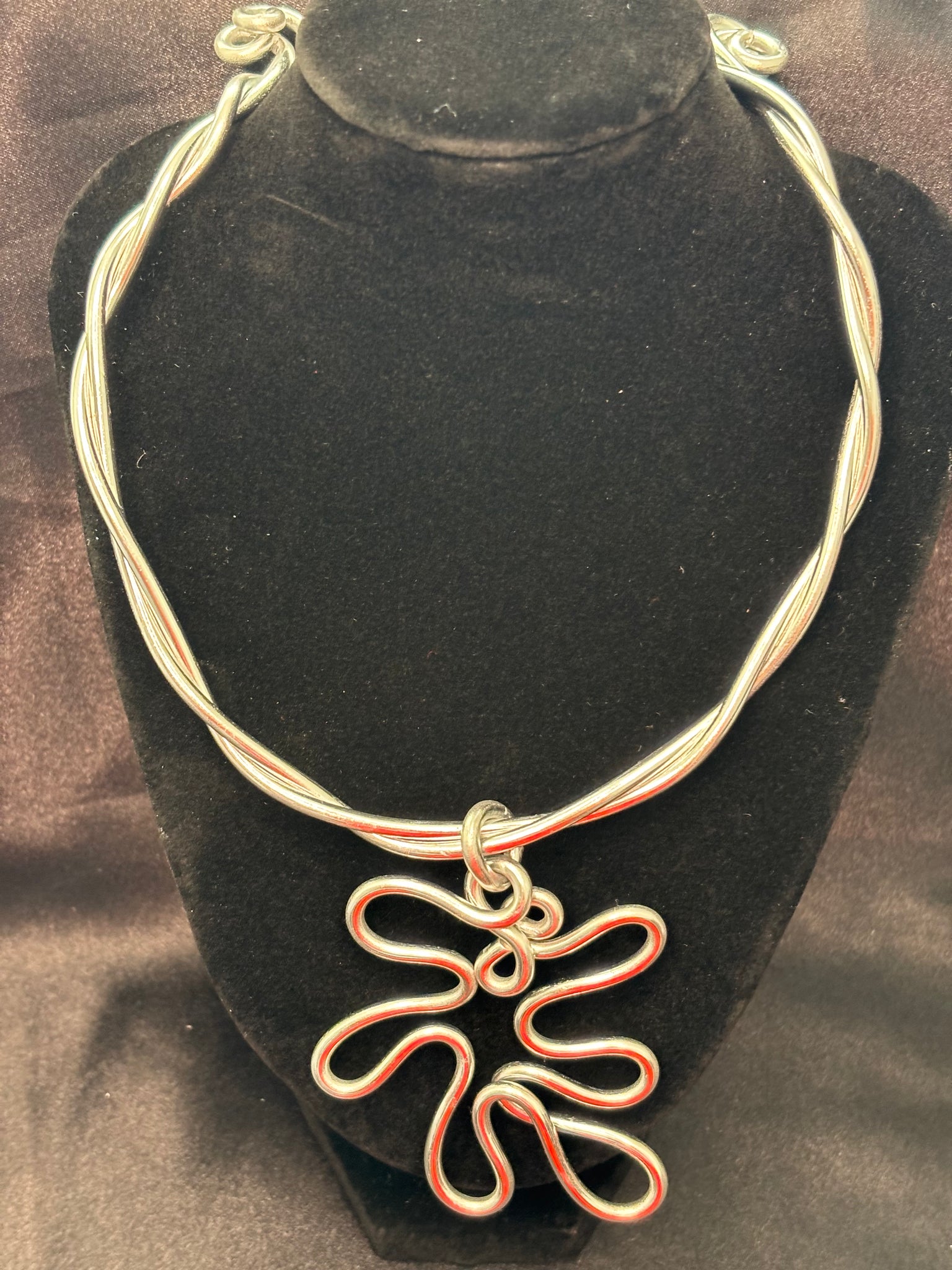 Hand twisted wired necklace and medium sized pendant. Lightweight, lead and nickel free.